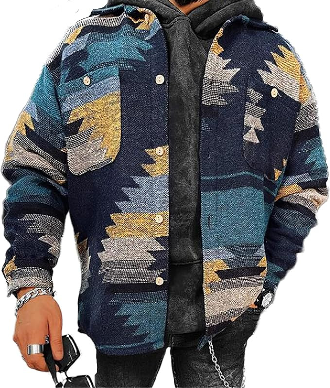 Akivide Western Aztec Print Button Down Shirt Men Casual Geometric Aztec Long Sleeve Shirt Jacket...