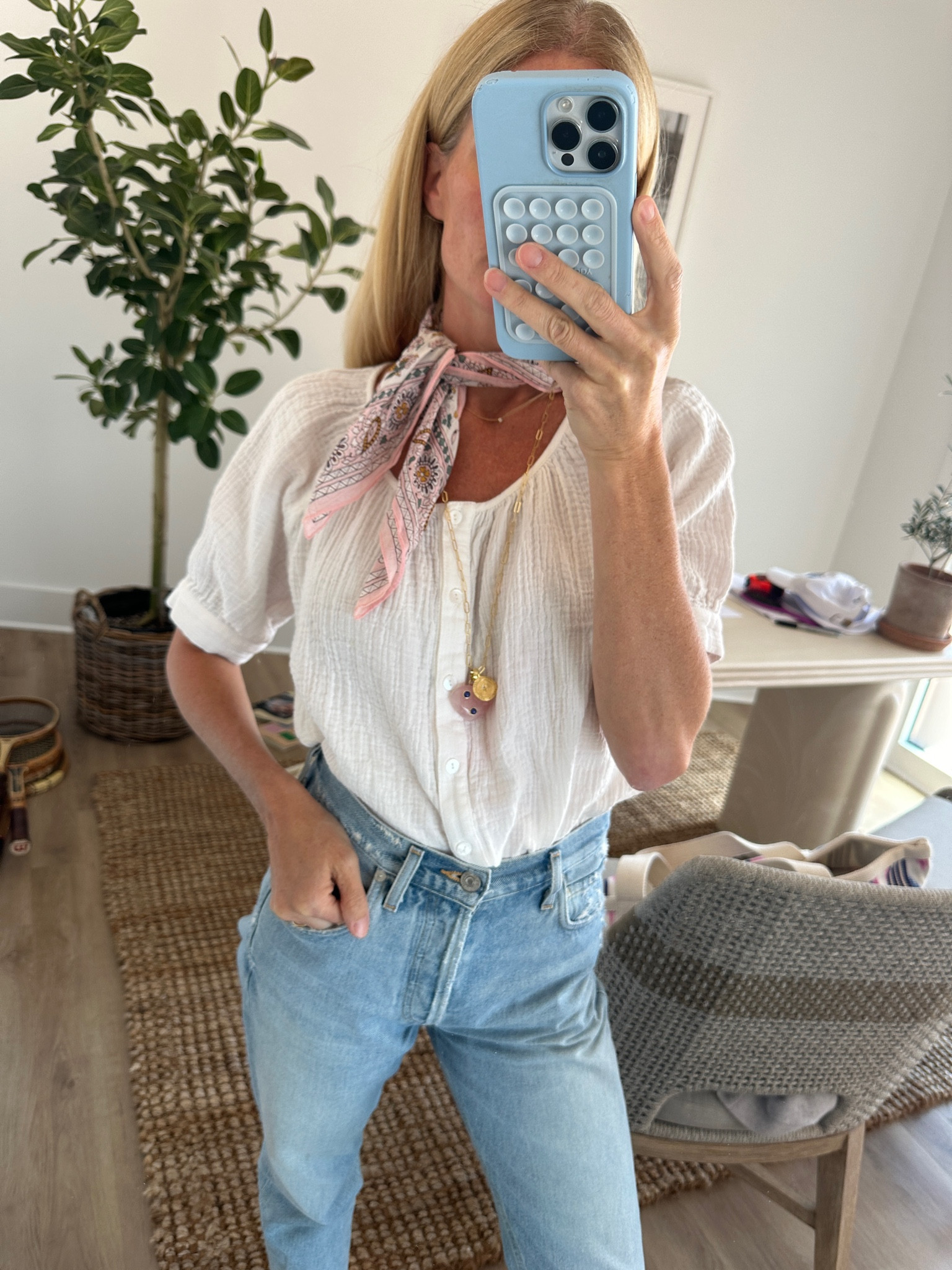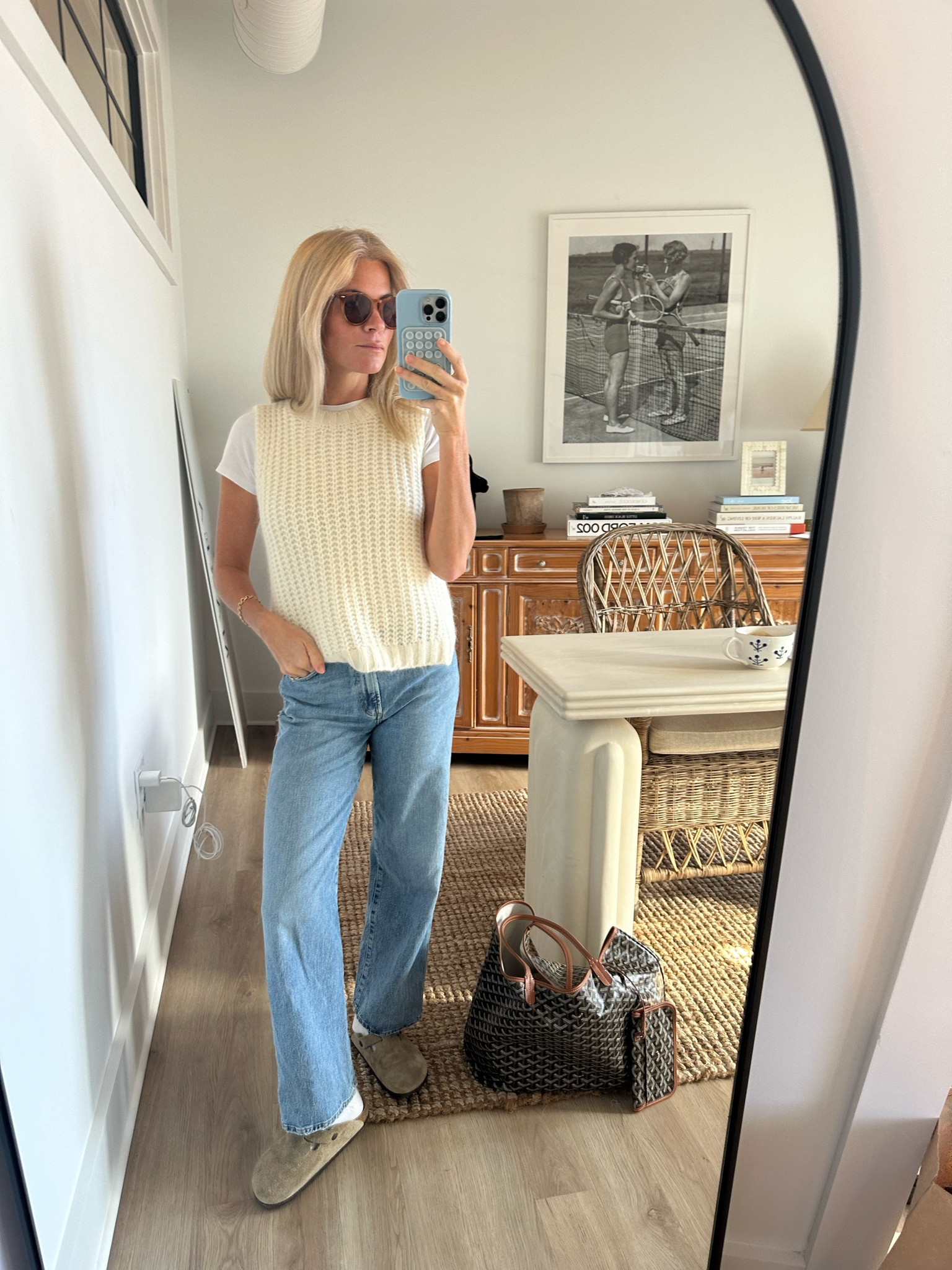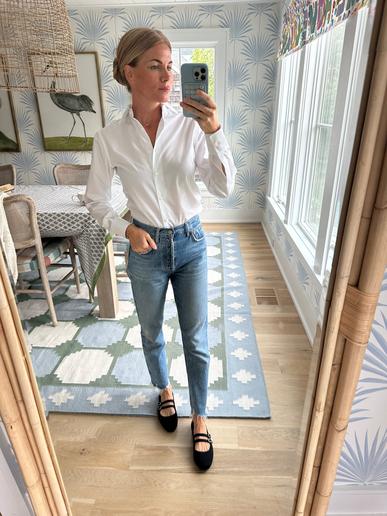 Thursday OOTD - western shirt - Billy sweater - white denim - loafers - TTS