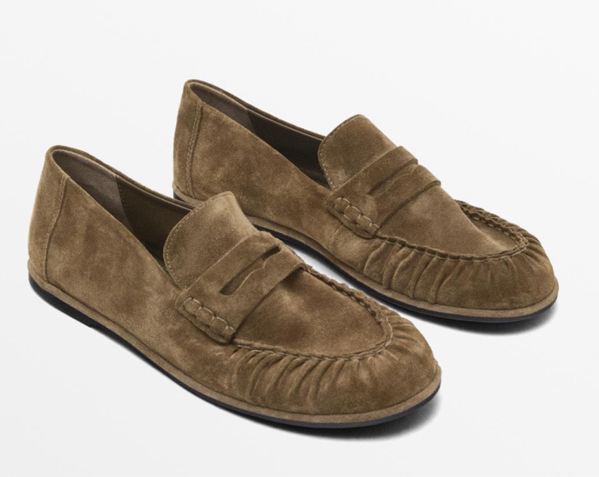 Gathered split leather loafers | Massimo Dutti US