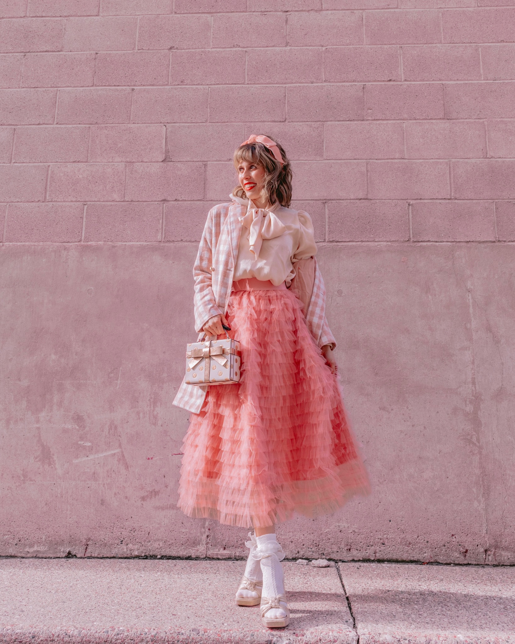 It's A Look Light Pink Plaid Coat | Red Dress