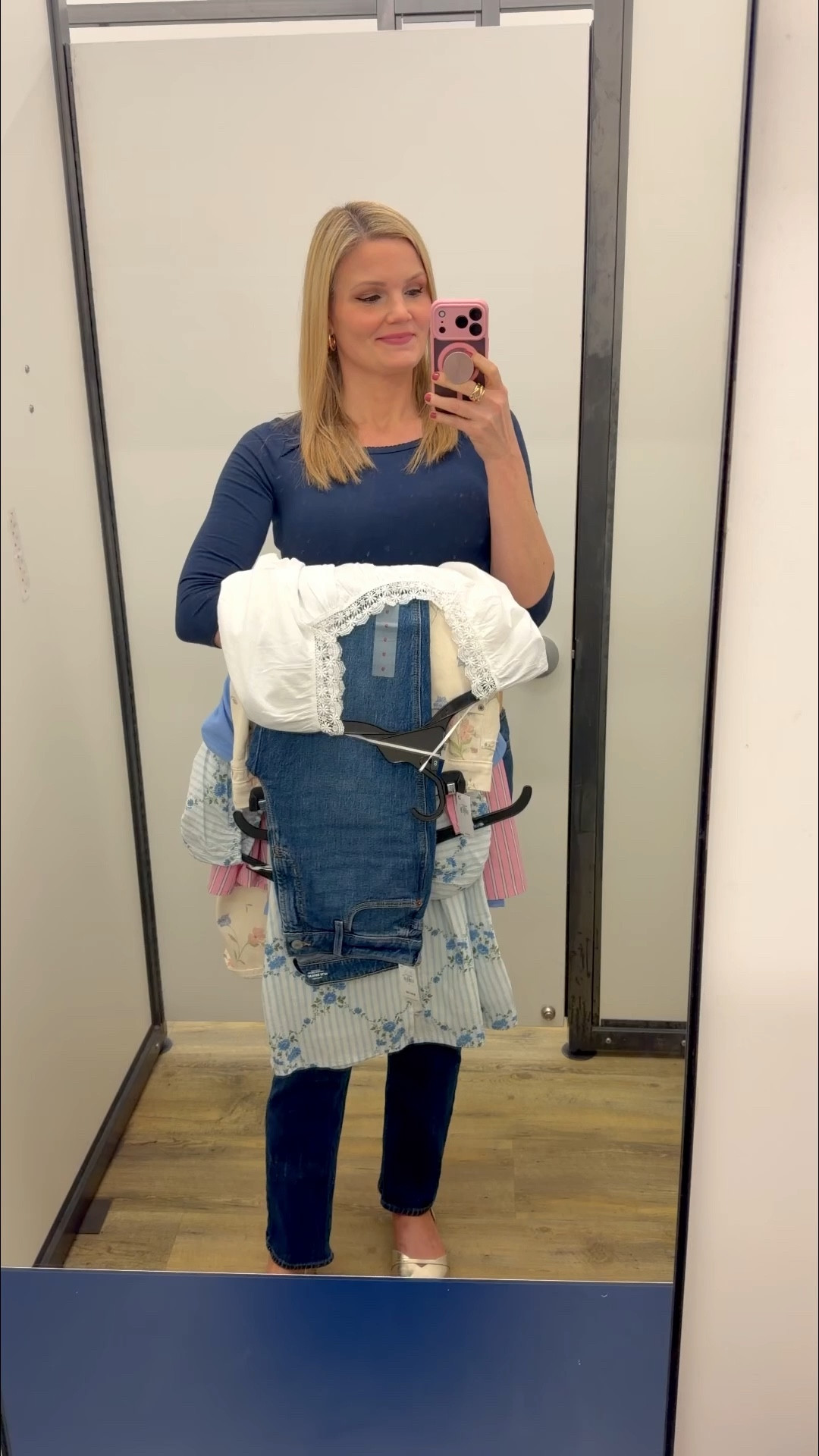 Red sweater with distressed high rise mom jeans and booties. TTS. Travel outfit #LTKcurves #LTKtravel #LTKunder50