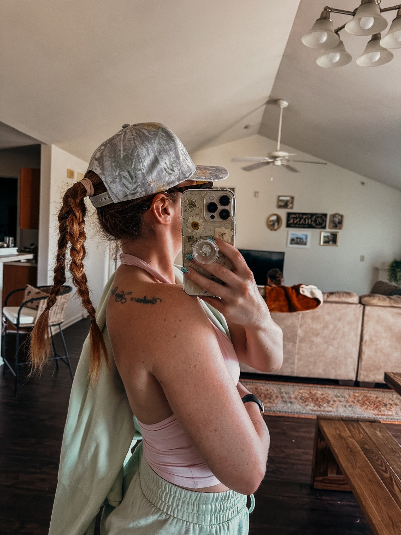 1. Play with hair (put a fun braid or twist or curl your hair so you have something to toss or play with! This helps with that (idk where to put my hands) anxiety we all get sometimes