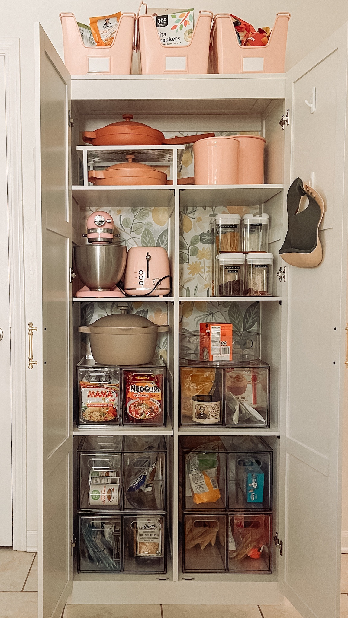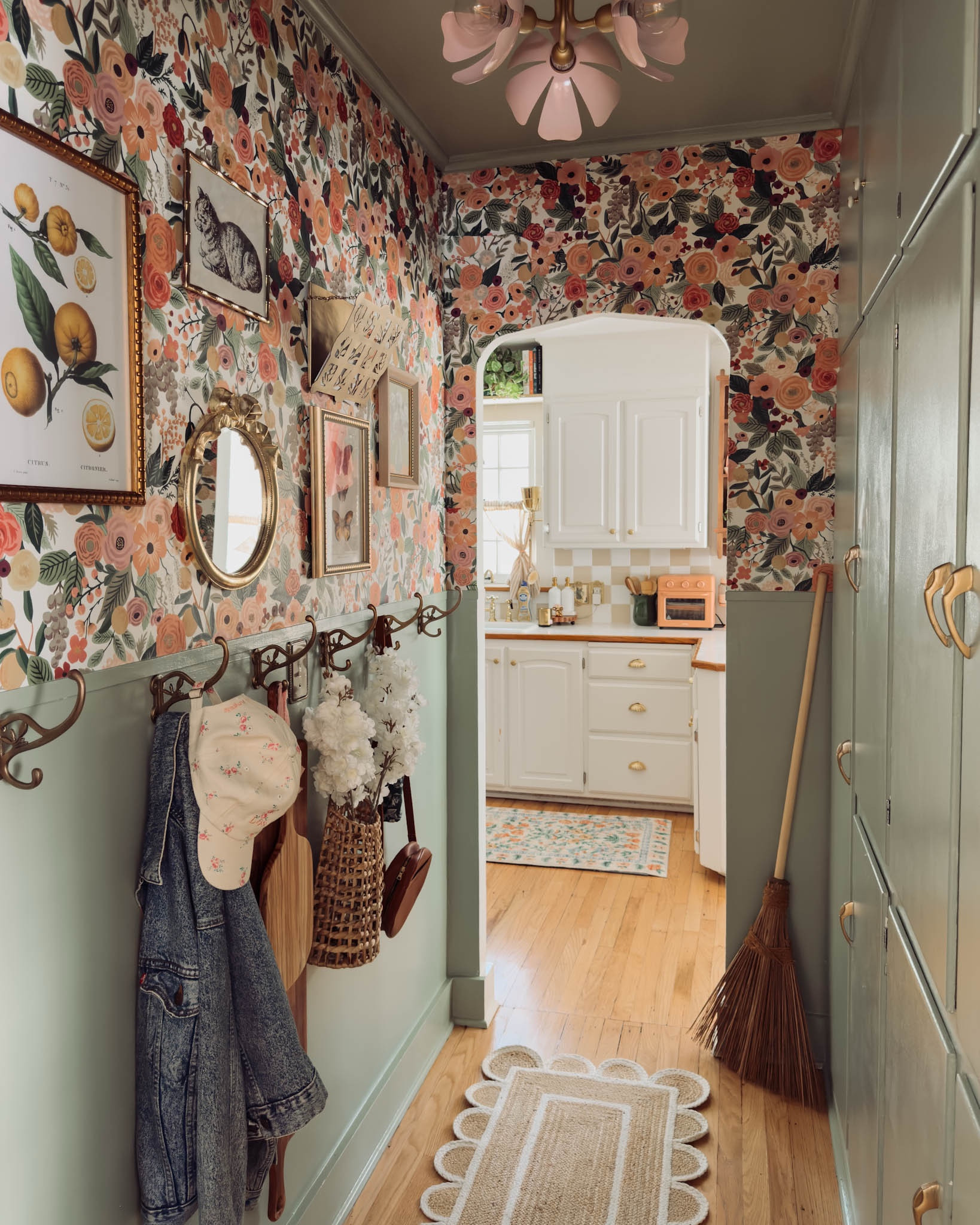 My rifle paper co peel & stick wallpaper and this storage cabinet I use for shoes are on sale on Wayfair! @wayfar #wayfair #entryway #wallpaper