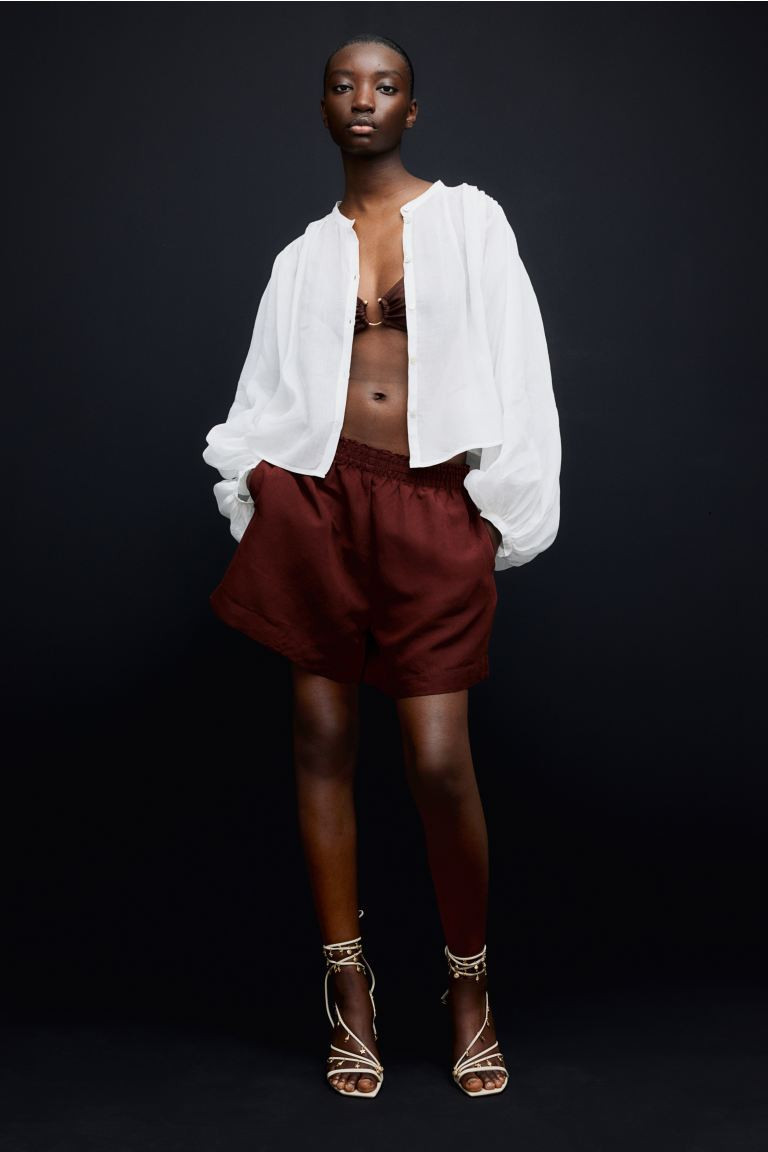 Holiday outfit summer dress mesh shoes linen shorts wedding outfit