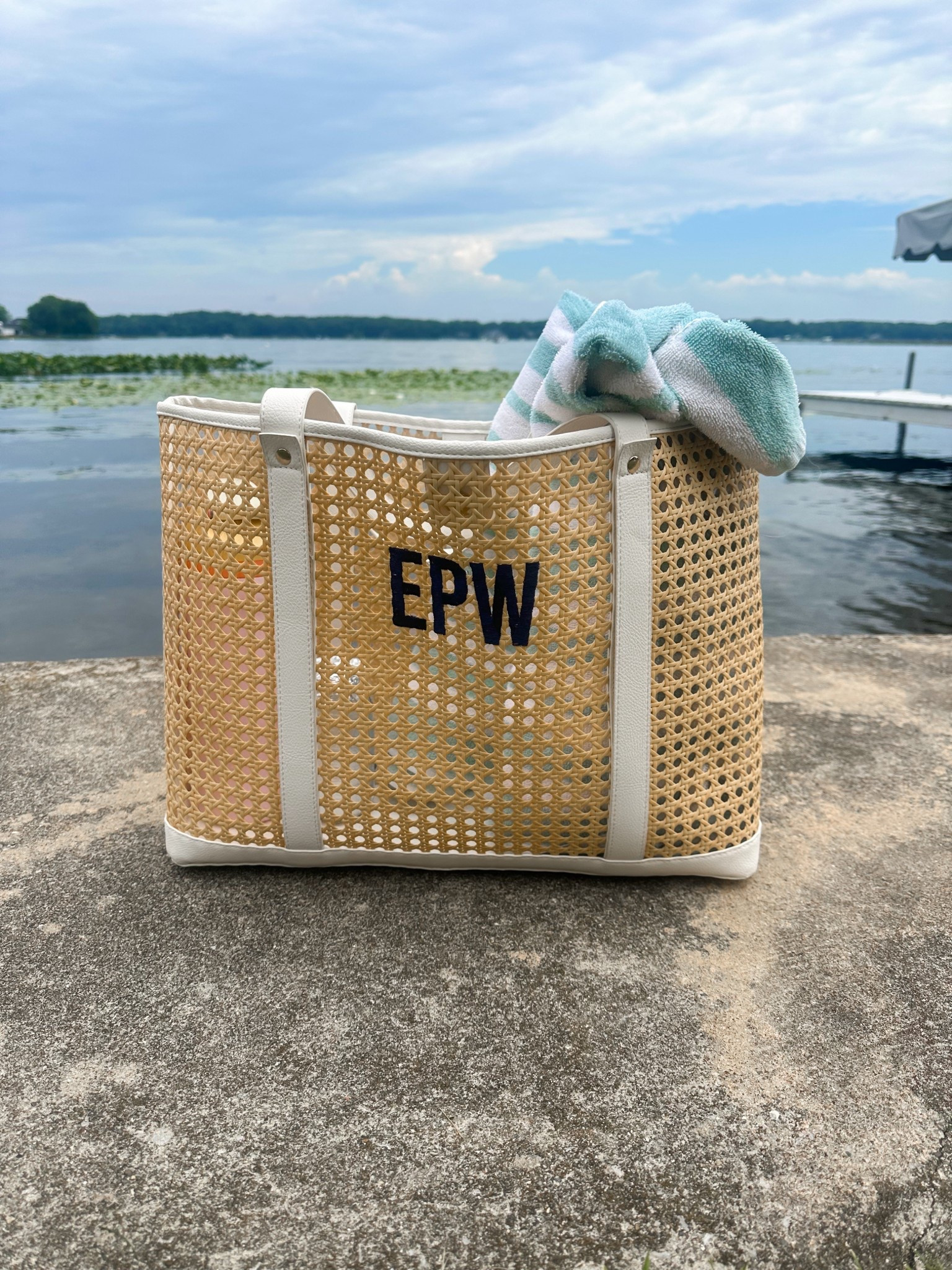 beach day with Sprinkled With Pink! The cutest clear monogrammed tote bag & Straw monogrammed pouch!
