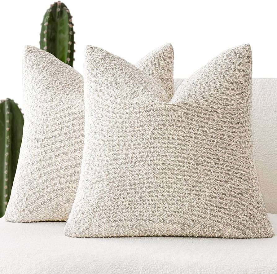 Foindtower Set of 2, Decorative Textured Boucle Throw Pillow Covers Accent Solid Pillow Cases Neu...