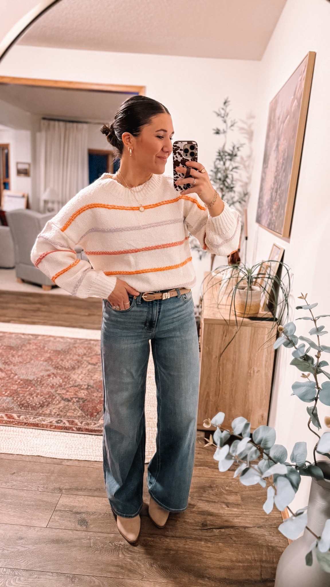 My new favorite jeans 😍 wide leg, high rise and stretchy!! & this sweater is the perfect cropped fit.