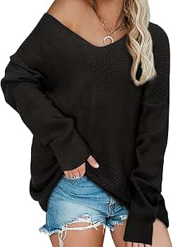 KILIG Women’s V Neck Batwing Long Sleeve Pullover Sweater Ribbed Knit Oversized Tops