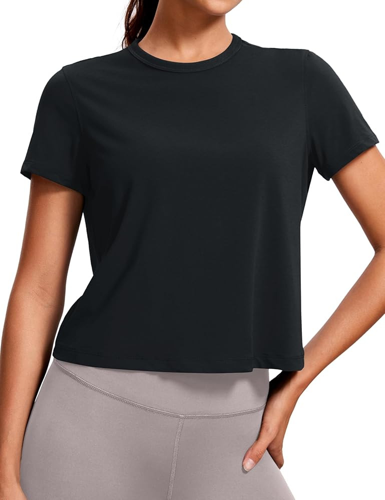 CRZ YOGA Seamless Womens Short Sleeve Crop Tops Breathable Slim Fit Gym Workout Shirts Athletic R...