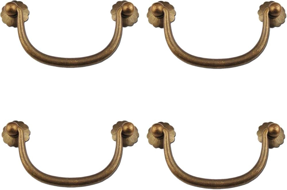 Txinmin 4 Pack Traditional Bail Cabinet Hardware Handle Pull Antique Brass Drawer Pull, 3-3/20 In...