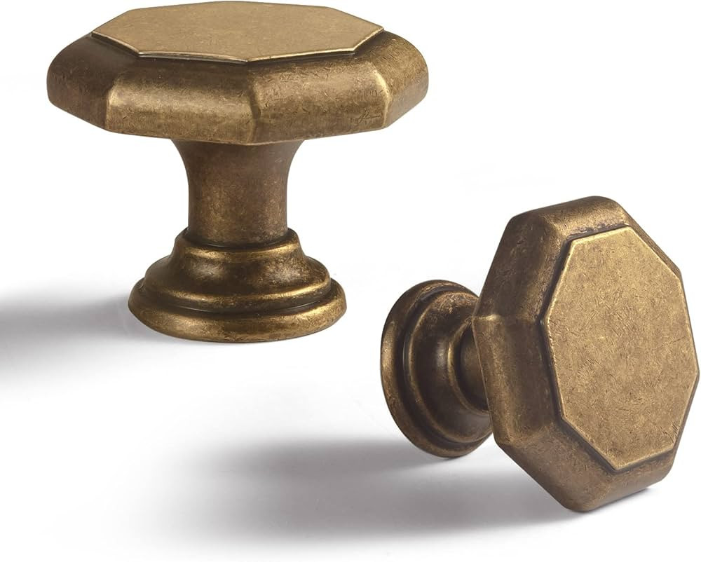RZDEAL 4 PCS 1.0'' x 0.9'' Antique Style Brass Simple and Elegant Pulls Solid Hardware Knobs for ...