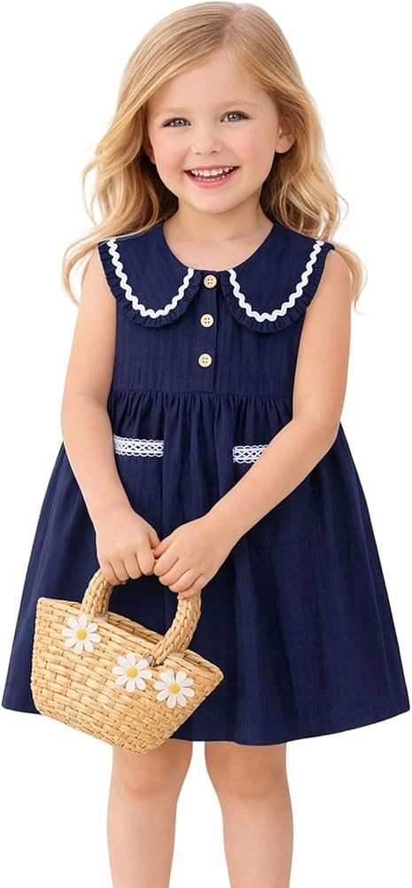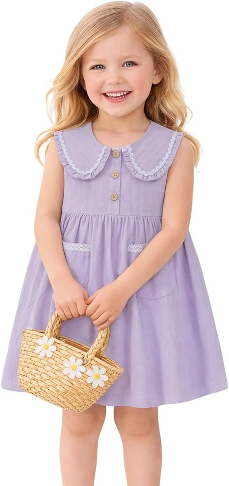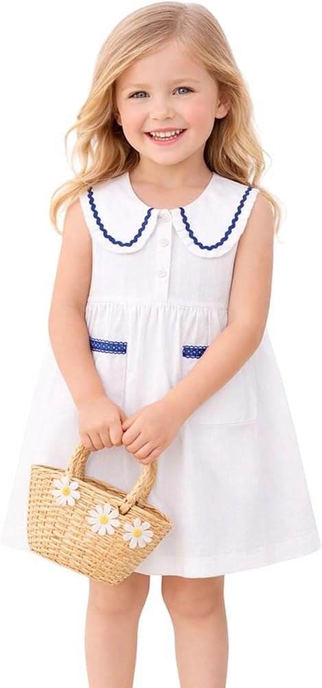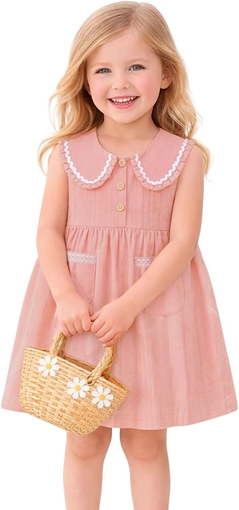 HILEELANG Little Girls Peter Pan Collar Dress Easter Spring Summer Cotton Sleeveless Sundress