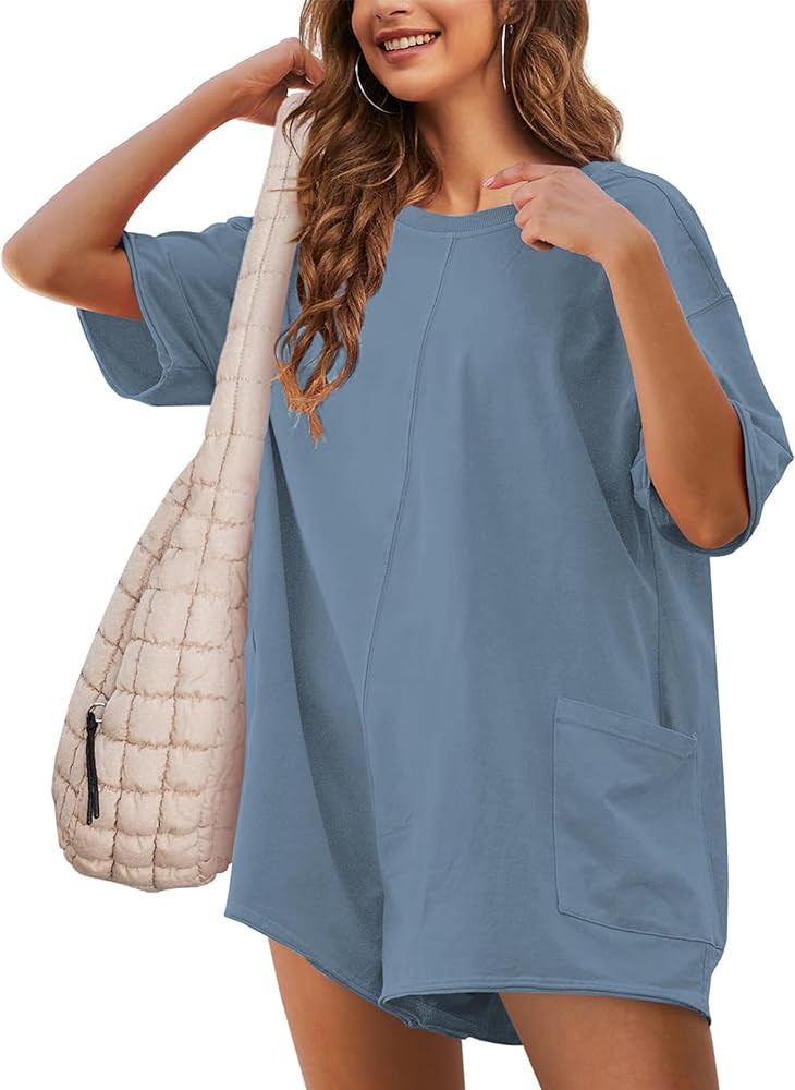 LTSCNRM Womens Tee Rompers Casual One Piece Hot Shot Oversized Overall Short Sleeve Reversible At...