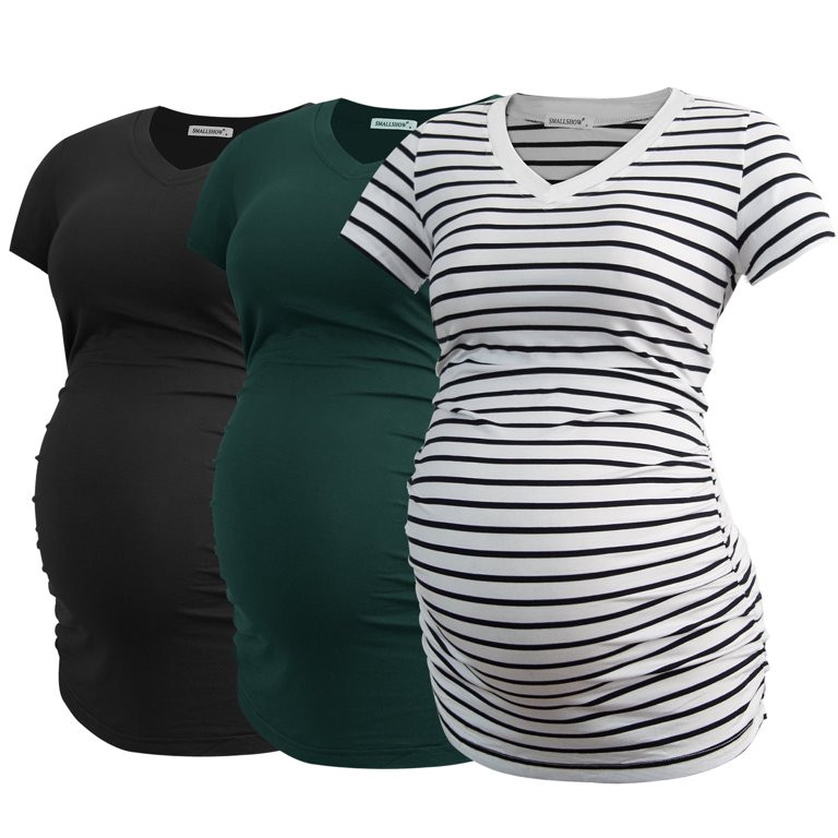 Smallshow Women's V Neck Maternity Tops Clothes Short Sleeve Pregnancy T Shirts 3-Pack - Walmart....