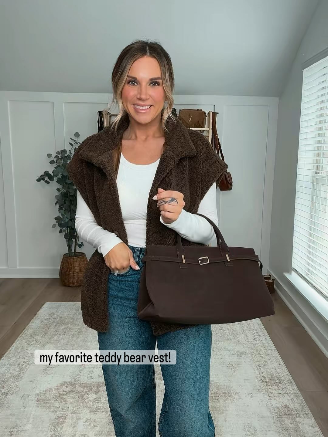 I felt so confident in this outfit, loved the way the jeans fit and made the 🍑 look good, the built in bra long sleeve top is 👩‍🍳 💋 but the vest 😍 she stole the show! Perfect for a casual Valentine's Day look too.