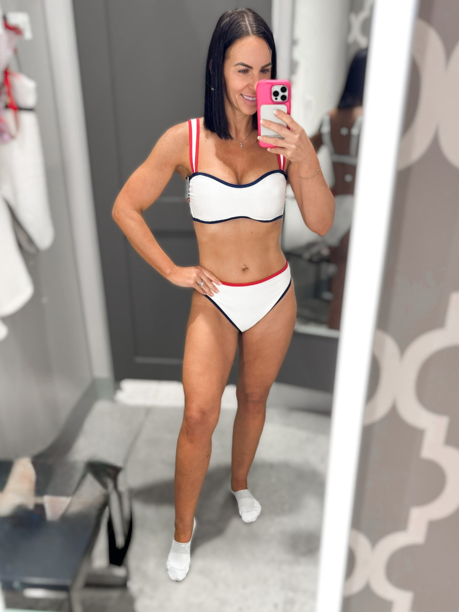 For several years Aerie has been my go to for suits. With so many options to mix and match I always find something I love. This long-line bandeau too comes with removable straps. Now this bottom is on the cheeky side, but the higher waist is great if that’s an area you struggle with. And how about the color?!💕 Wearing a medium top and bottom LTKswim LTKSeasonal LTKunder50