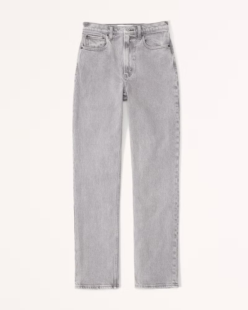 Abercrombie & Fitch Women's Ultra High Rise 90s Straight Jean in Light Grey - Size 36 SHORT