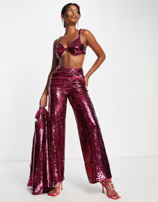 Extro & Vert slouchy wide leg pants in hot pink sequin - part of a set