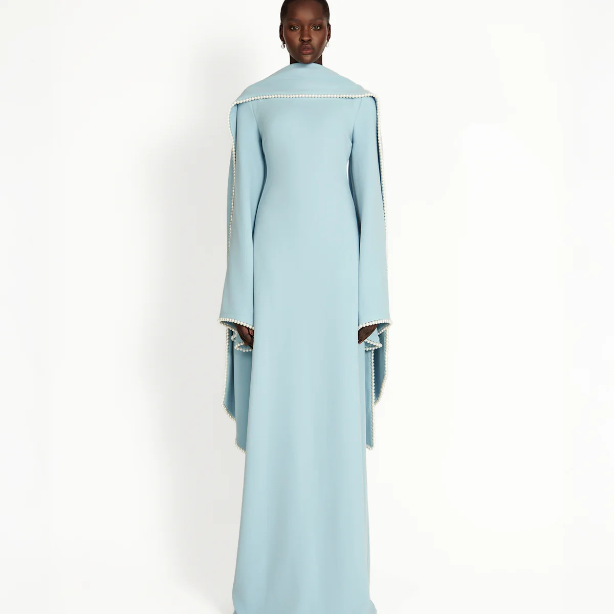 Starred Black High-Neck Maxi Dress With Satin Wrap-Skirt And Embellished Cuffs