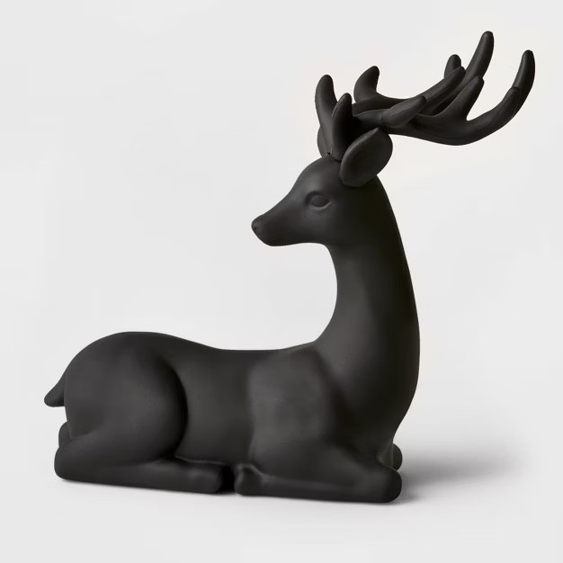 12" Plastic Sitting Deer Decorative Figurine Black - Wondershop™