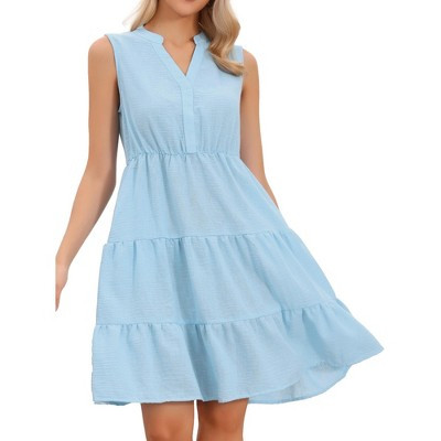 INSPIRE CHIC Women's Sleeveless V Neck Above Knee Summer A Line Casual Dresses X-Large Light Blue