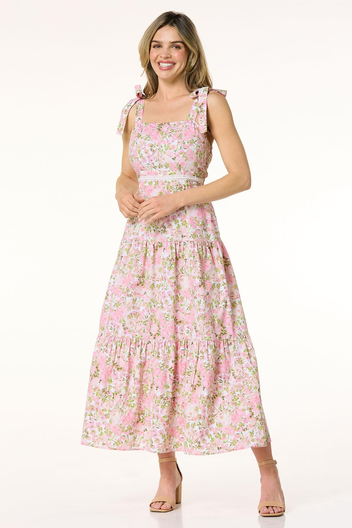 Pink Rose Tie Strap Dress - Pink