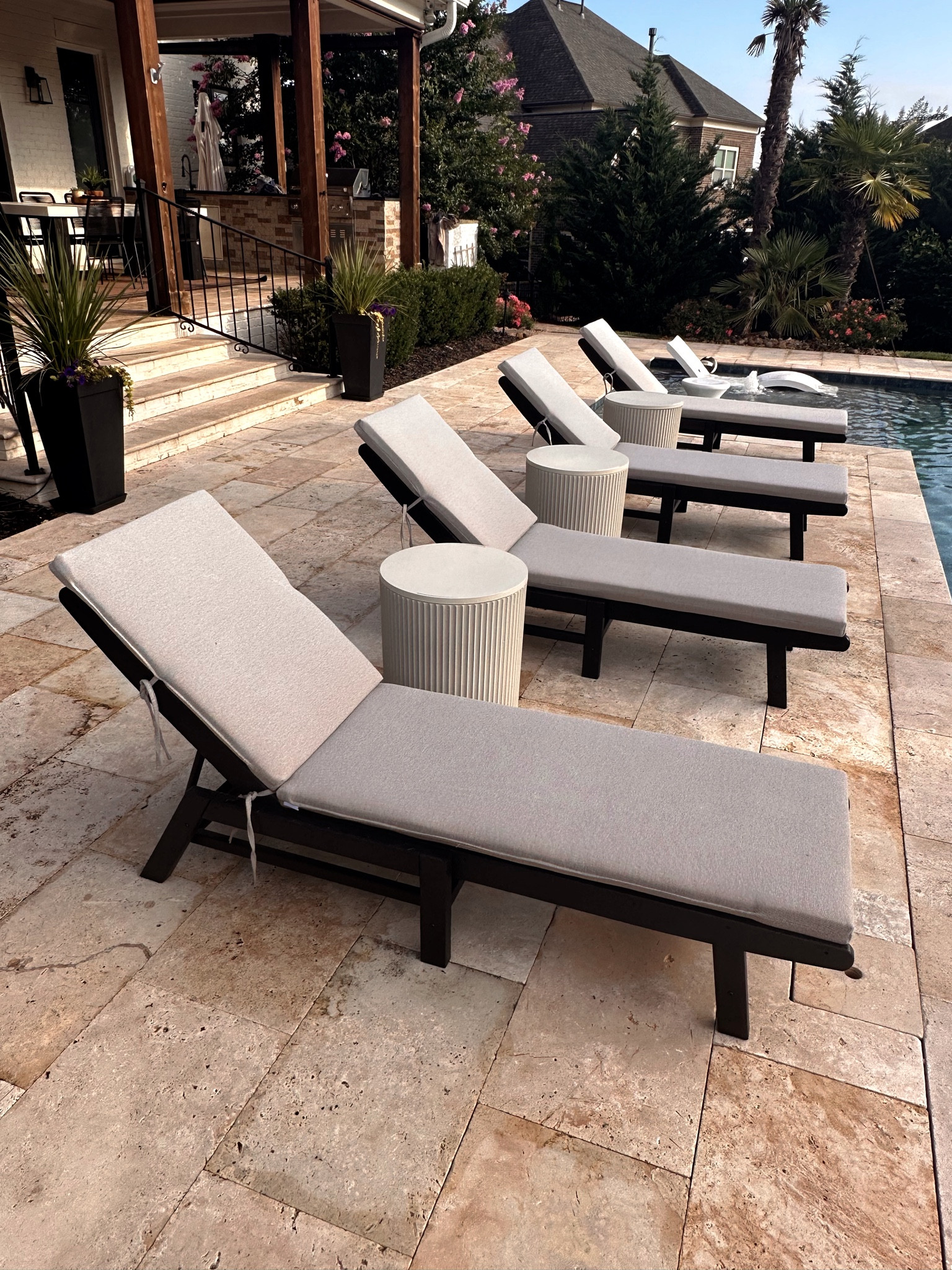 Outdoor Oasis for summer updates! Loving this GIANT umbrella that can be purchased with a base or we opted for a concrete foundation so it’s so sturdy!