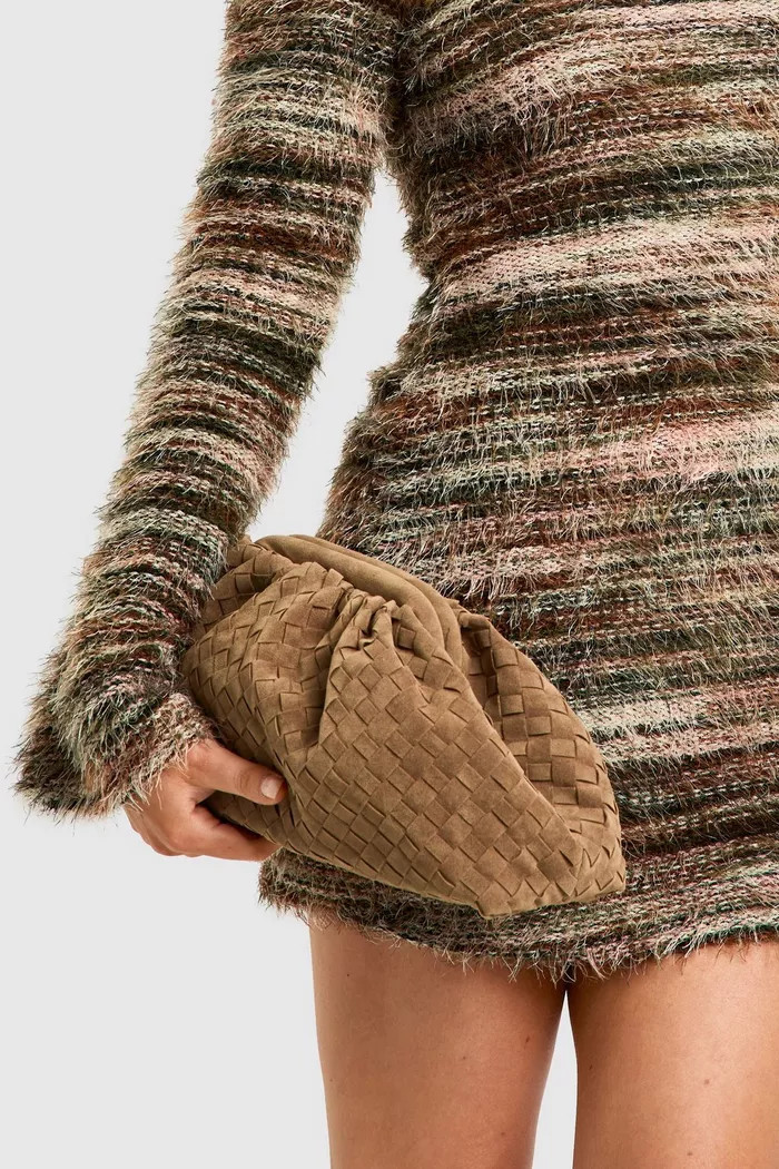 Woven Faux Suede Clutch Bag