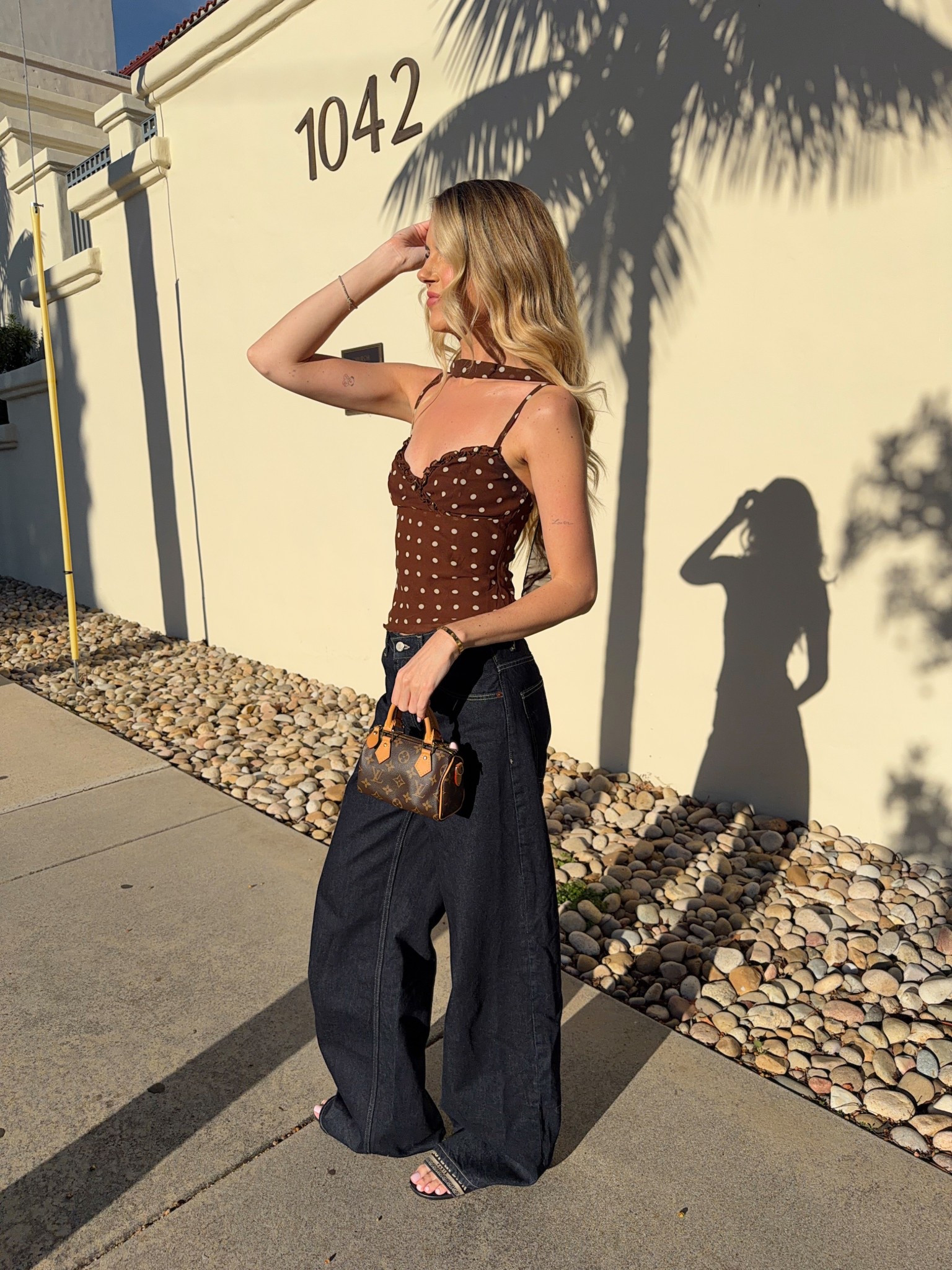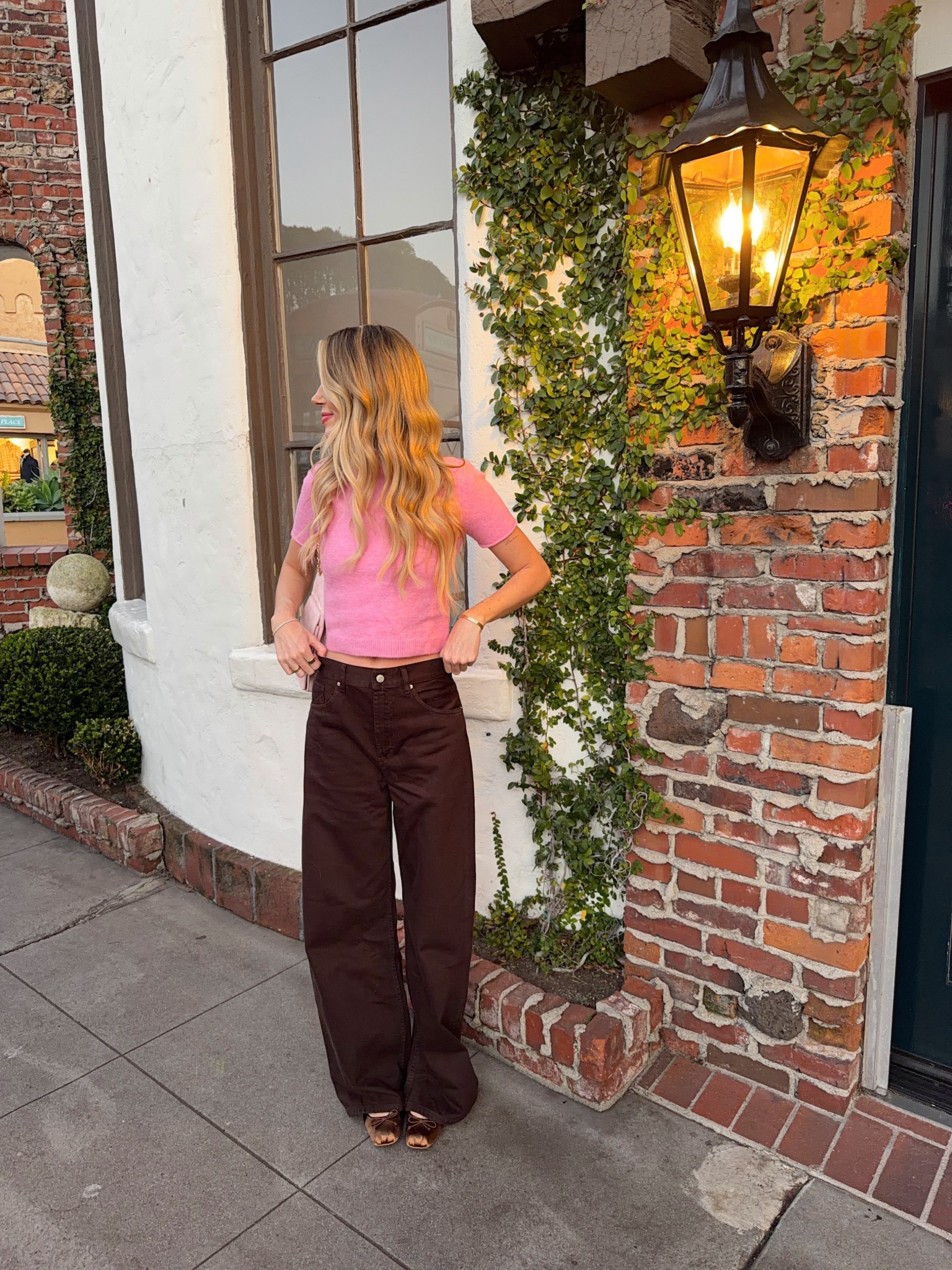 date night outfit 🤎 wearing a size 4 in the denim & 2 in the top!