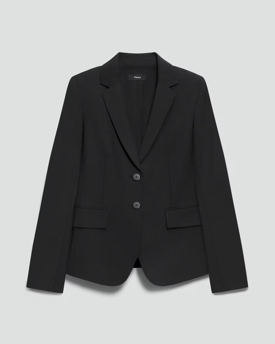 A collection of classic black wool blazers in a minimum of 96% good wool