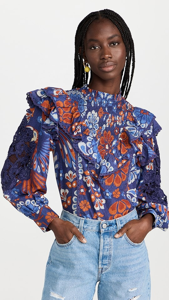 FARM Rio Pineapple Flowers Navy Blouse | SHOPBOP