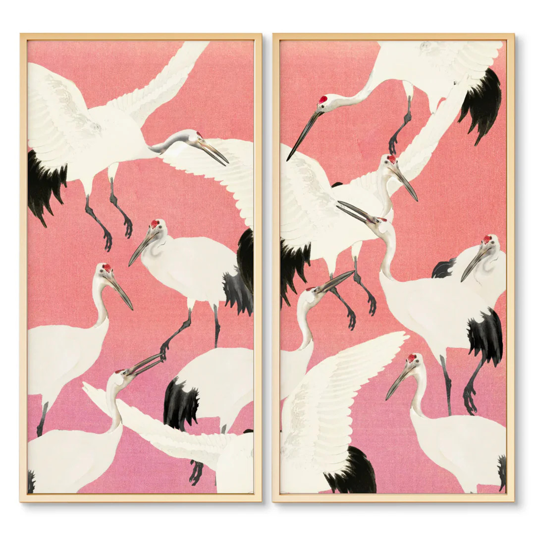 Dancing Heron Panel Pair