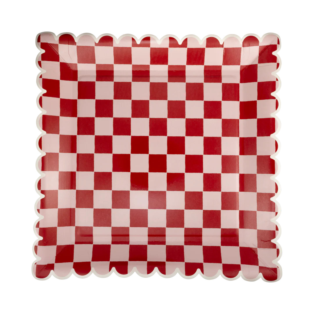 Pink and Red Checked Paper Plates