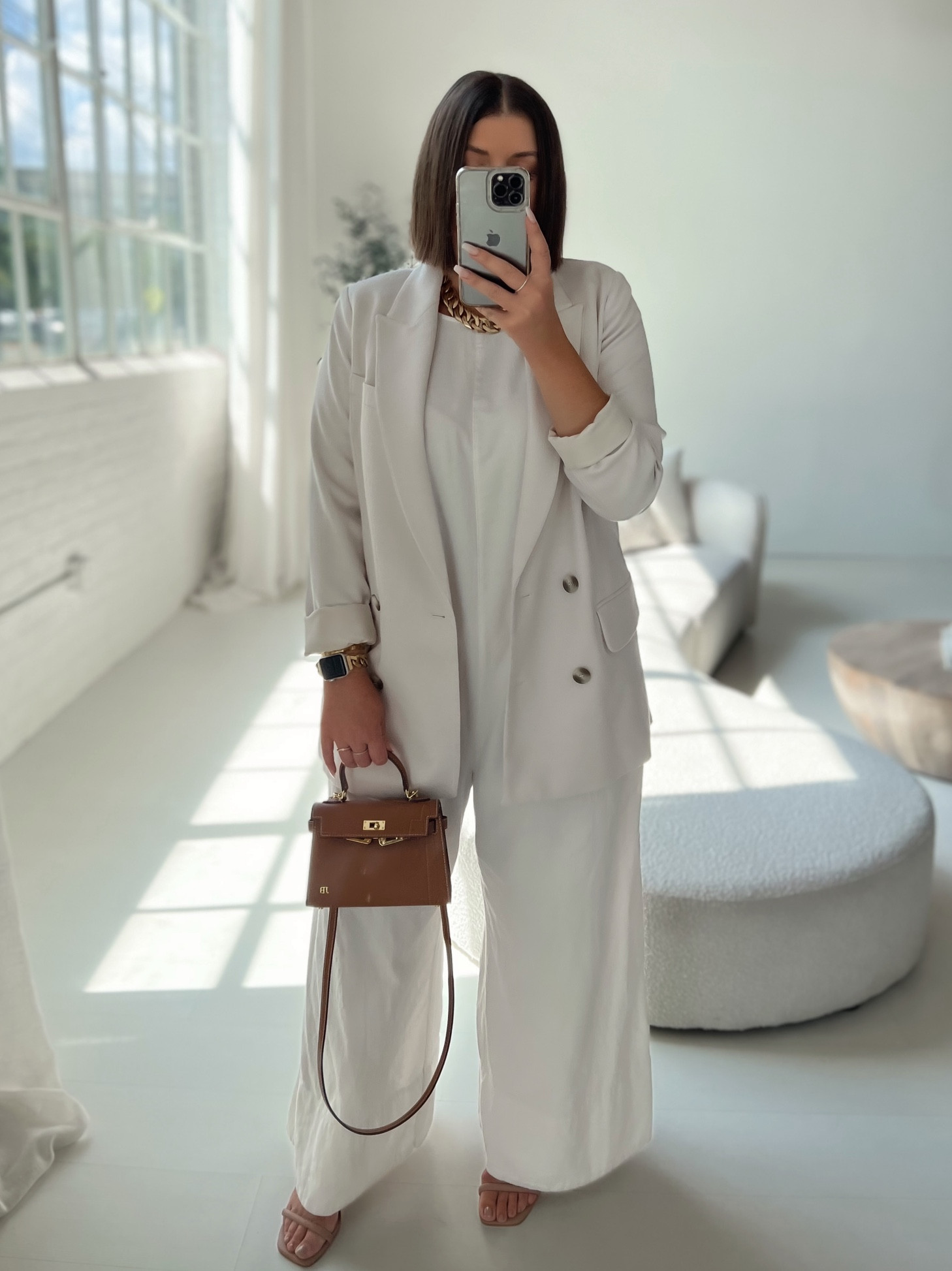 Tis the season for WHITE 😍 The halter vest is TIGHT AF, def runs small. I’m a true medium and struggled to button it… & I’m a full A cup. Def size up in this one!