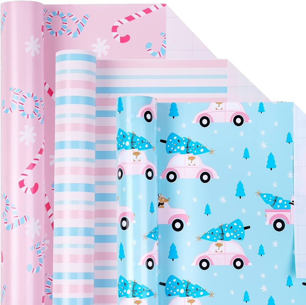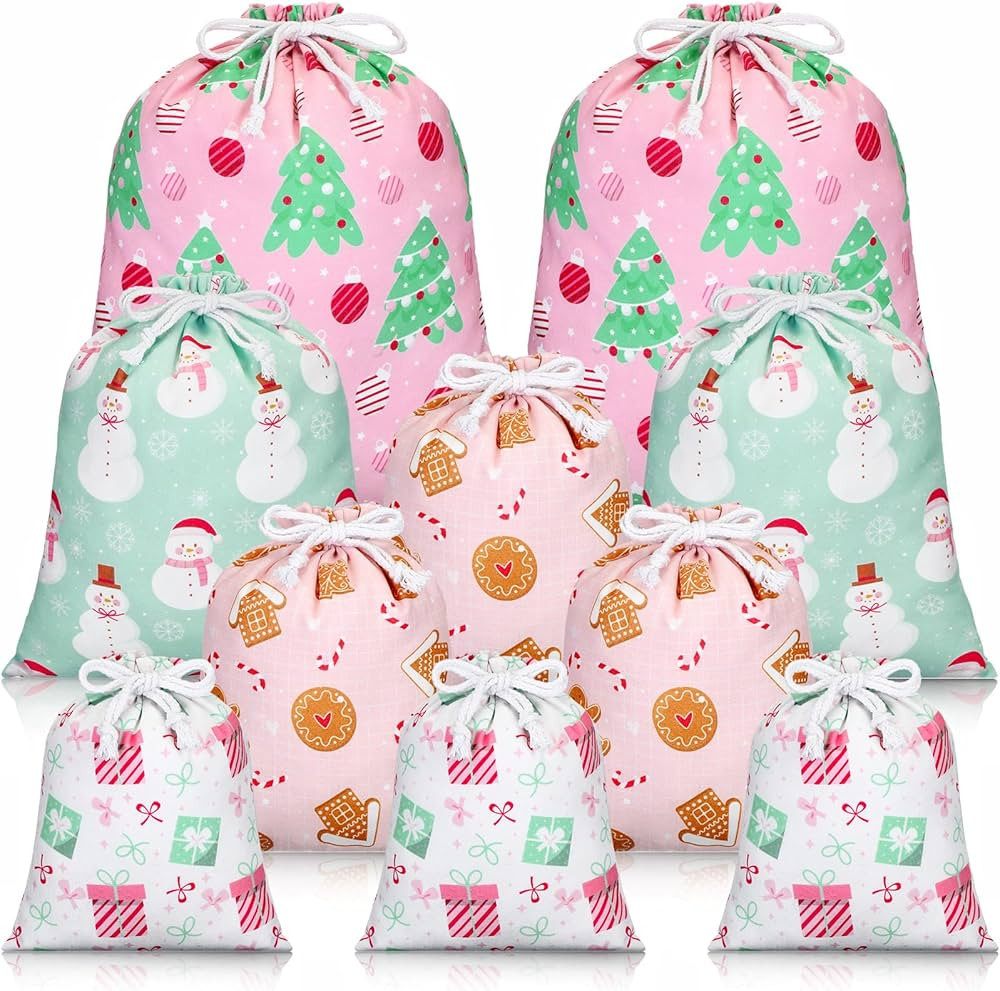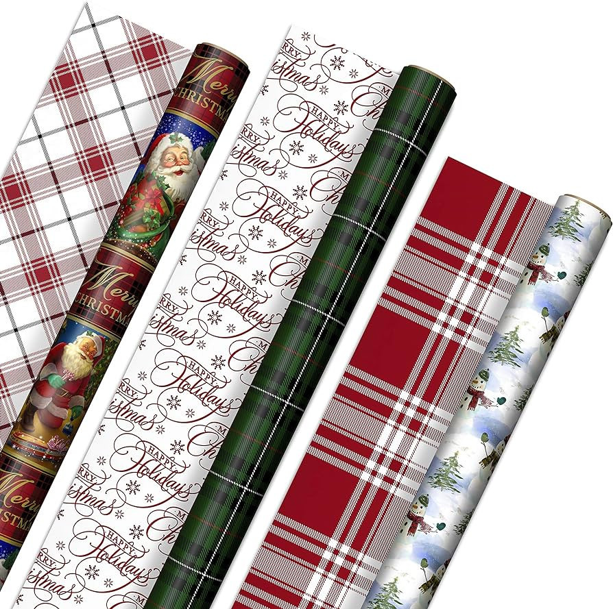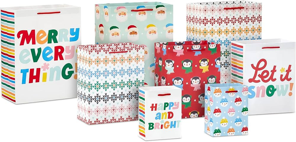 Wrapping paper, gift tags, ribbon, gift bags, Santa stamp, North Pole bags. Christmas, gift wrap