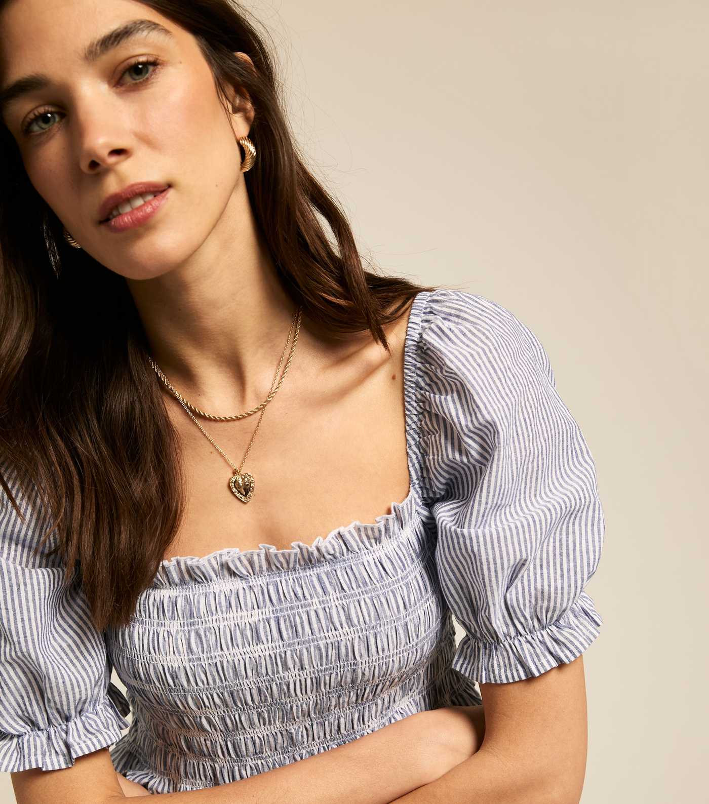 Blue Lightweight Striped Puff Sleeve Midi Dress | New Look