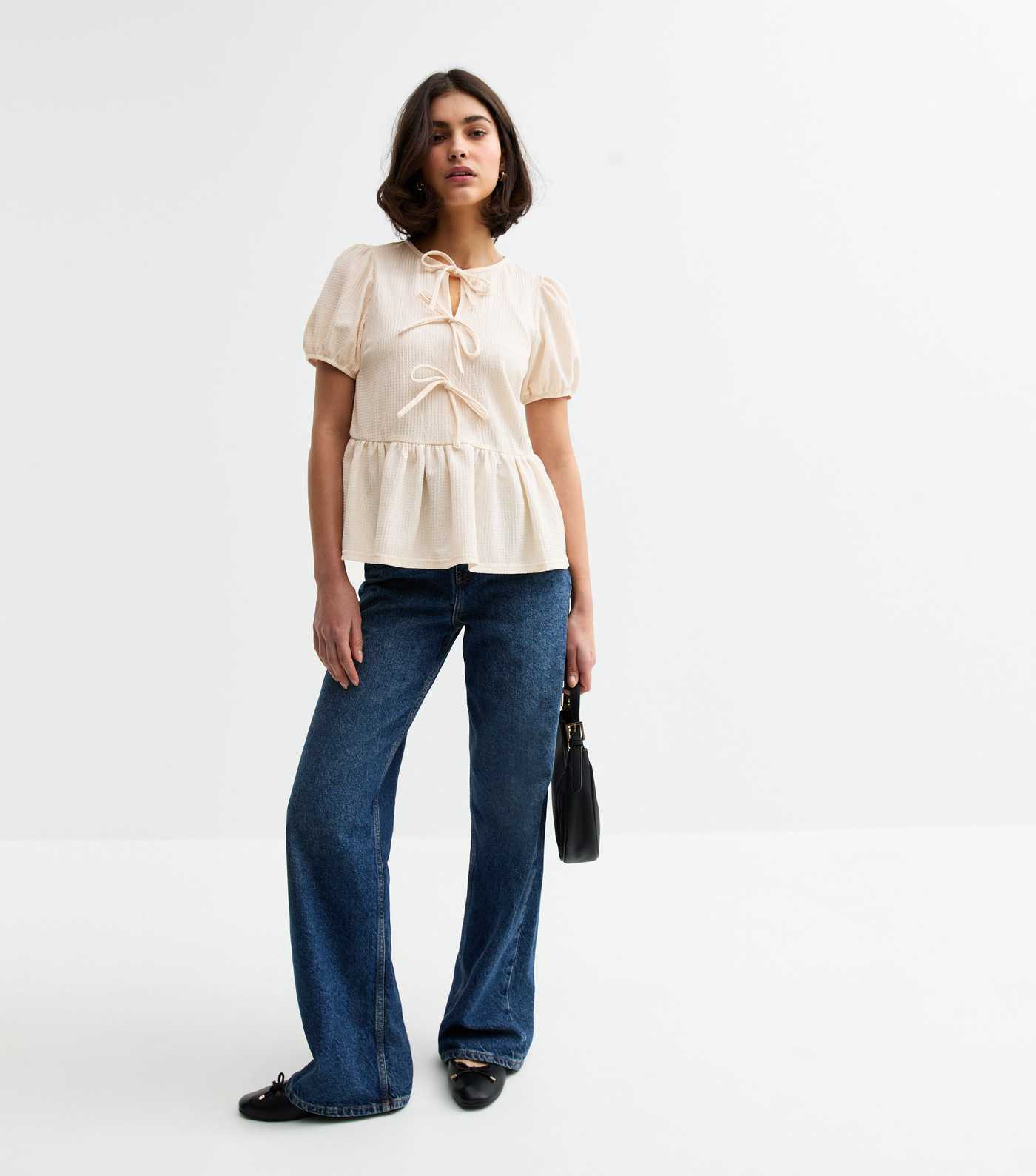 Cream Crinkle Texture Tie Front Smock Top | New Look