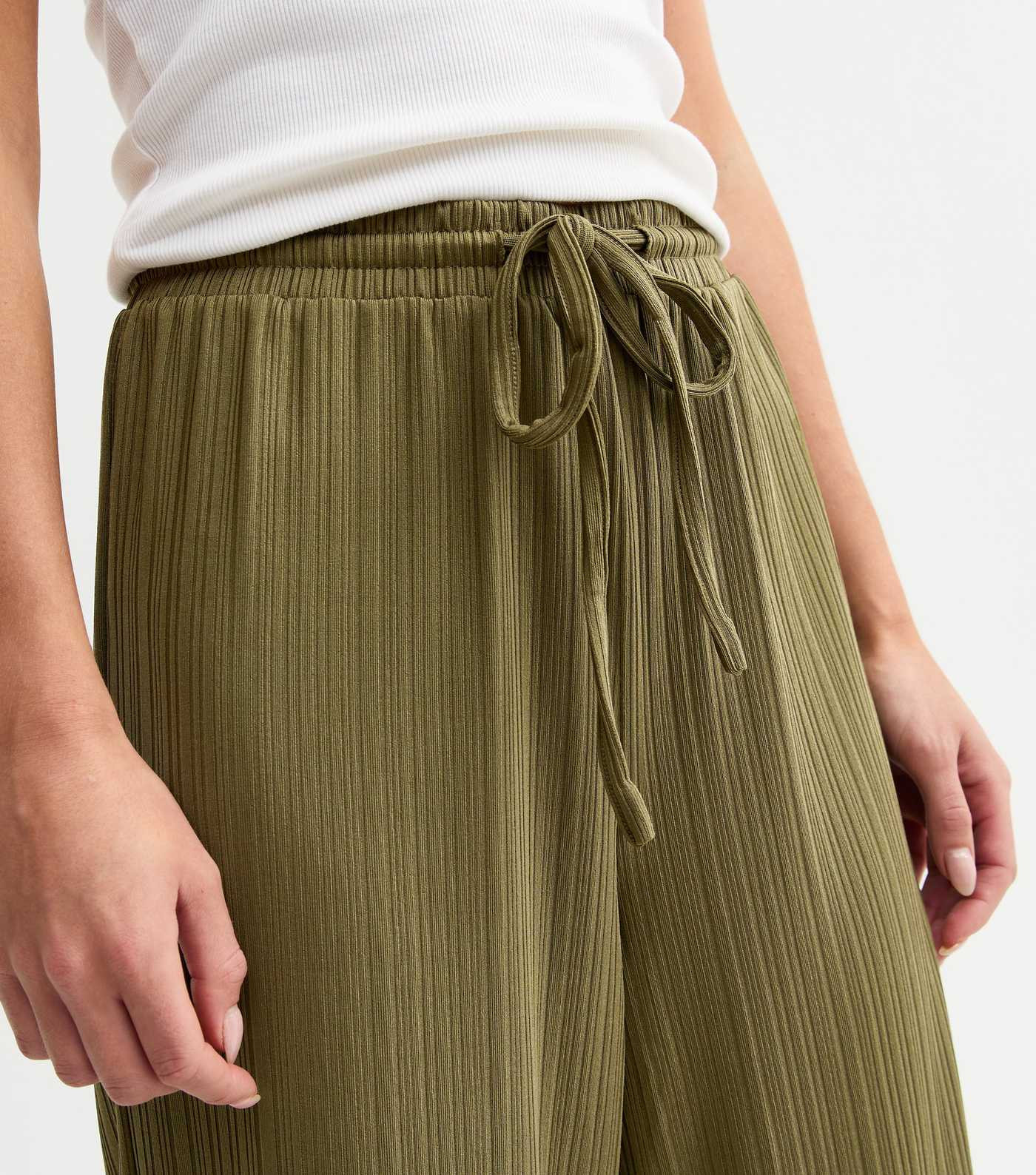 Petite Khaki Ribbed Cropped Trousers | New Look