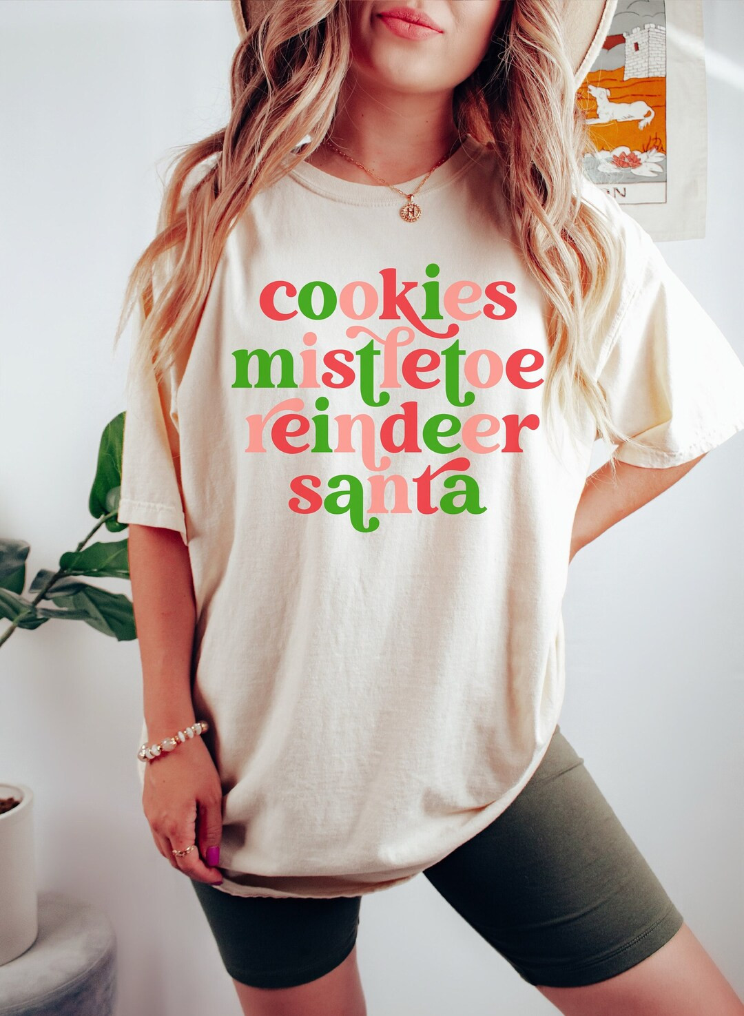 Retro Merry Christmas Comfort Colors® Shirt, Vintage Christmas TShirt, Christmas Cookies Mistletoe R