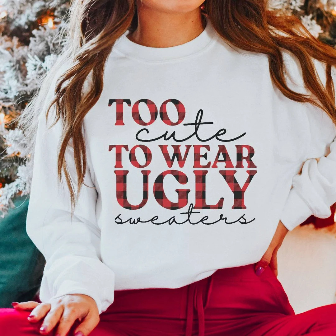 Funny Christmas Sweater, Ugly Christmas Party Sweater, Cute Christmas Shirt,Too Cute to Wear Ugly...