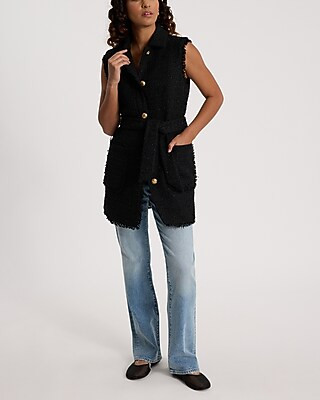Shine Tweed Fringe Novelty Button Belted Vest