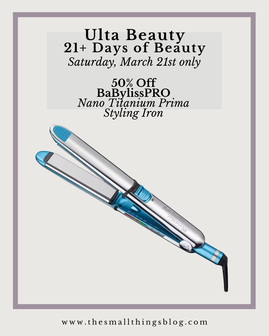 One of my favorite events happens only twice a year, and it’s on now! Shop Ulta Beauty’s “21 Days of Beauty Event” from March 6th to 26th. During these four weeks, get 50% off daily and weekly beauty steals. Be sure to check back each day to see what is on sale. And don’t forget to join @UltaBeauty Rewards and earn points while you shop!  #ulta #ultabeauty #ad