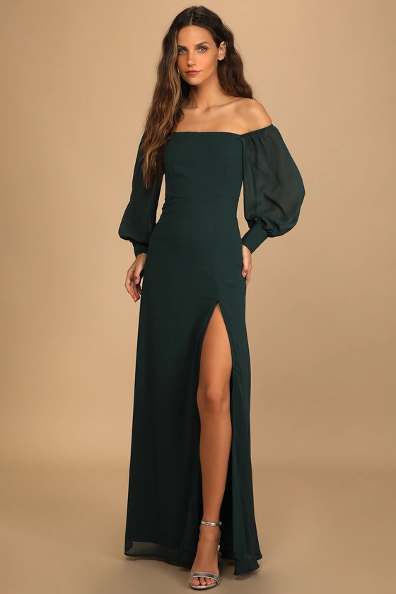 Feel the Romance Emerald Green Off-the-Shoulder Maxi Dress