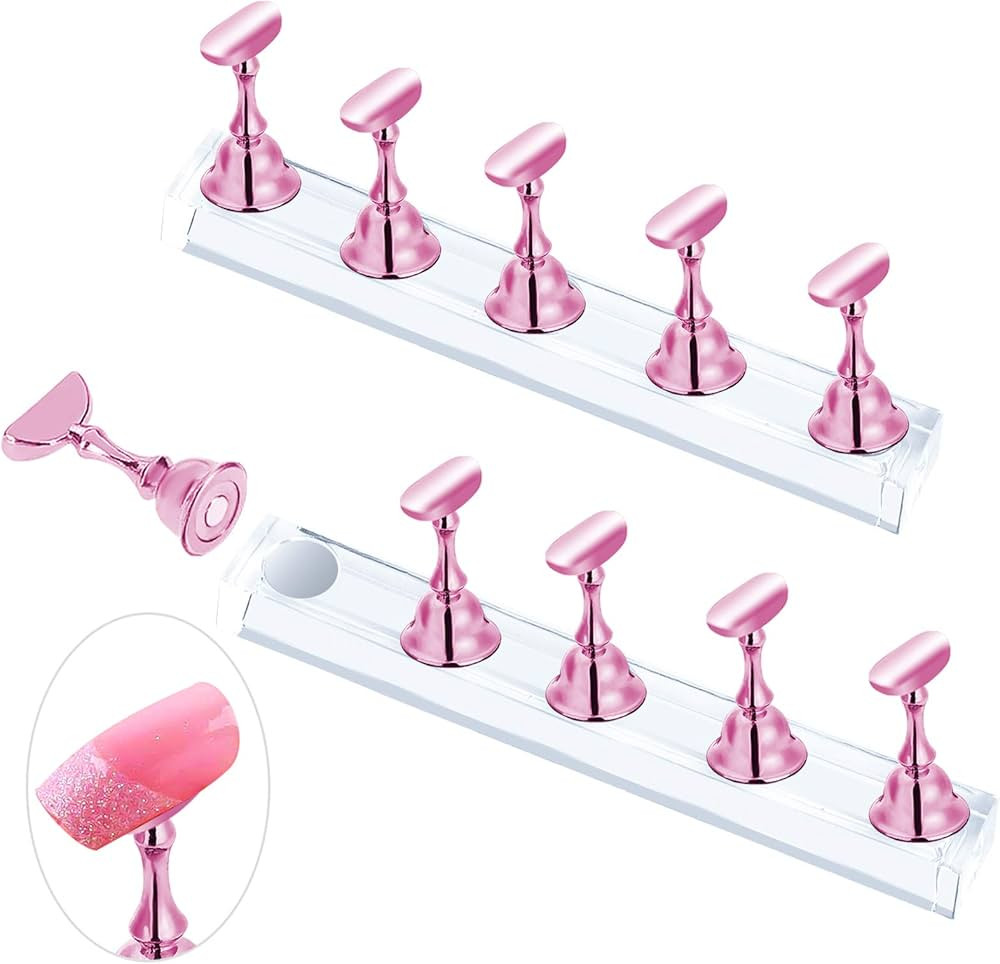 JUSTOTRY 2 Sets Pink Nail Stand for Press on Nails Display, Magnetic Fake Nails Holder for Painti...