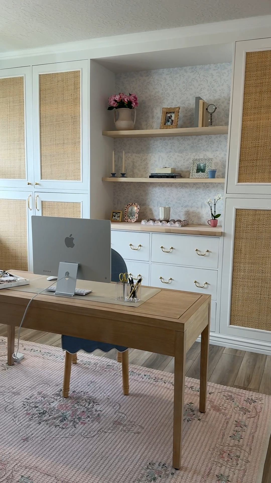 The prettiest grandmillennial  barstool cushions we had made!