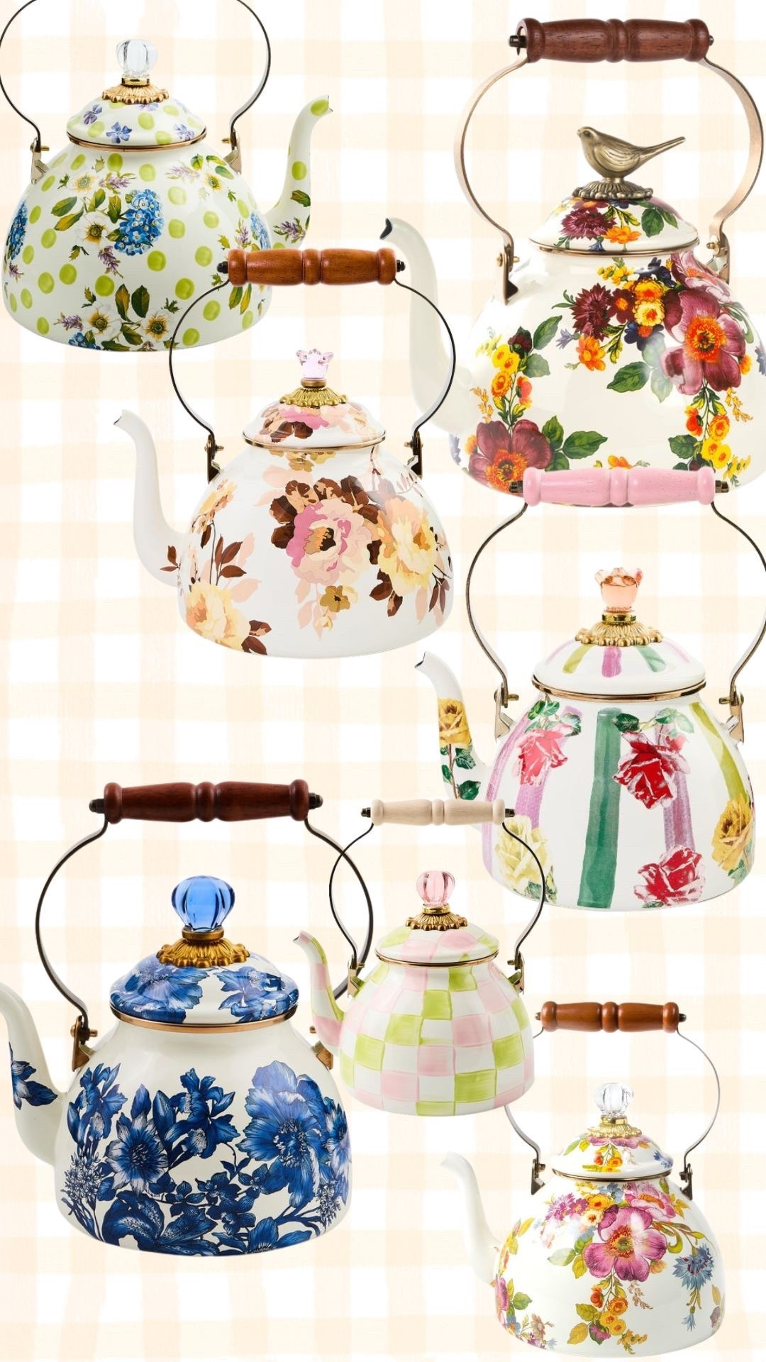 Palm Beach Check 2 Quart Tea Kettle | MacKenzie-Childs