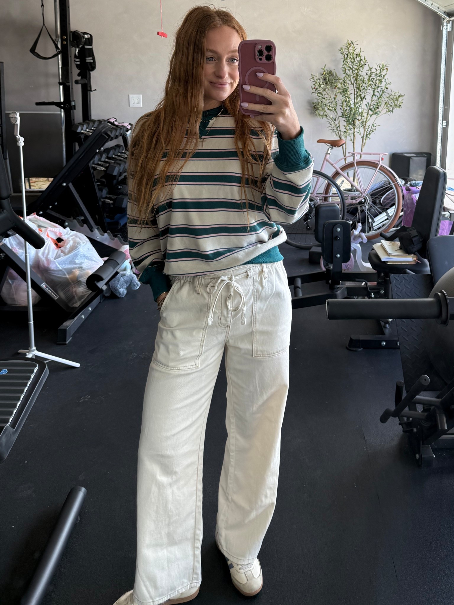5’7 and a small in bottoms and a medium in tops