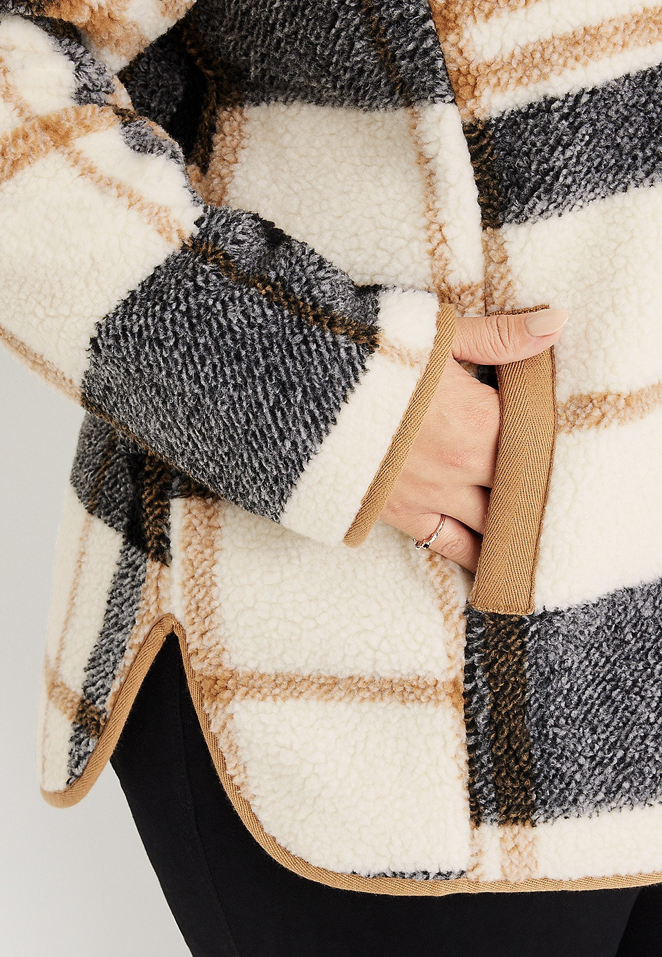 Plus Size Plaid Sherpa Snap Button Jacket