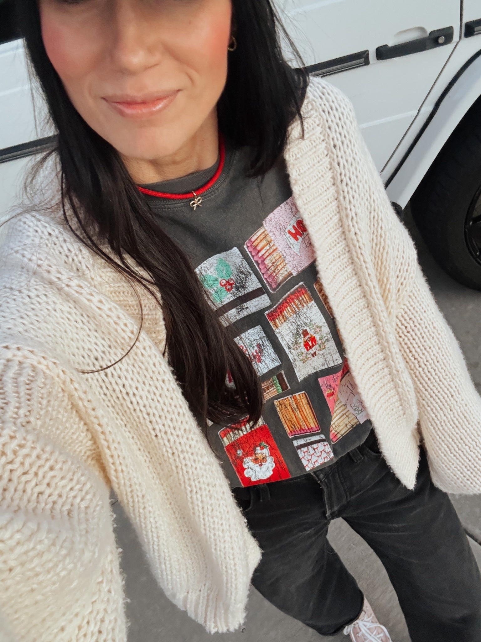 The best black jeans- a fun tee and of course some Converse. Tomorrow we have our Christmas party at work and for the fam, so lots on the to-do list. 🎅 I’ll link what I can in LTk- my tee is @jules_co_ and cardigan is old from @anthropologie.