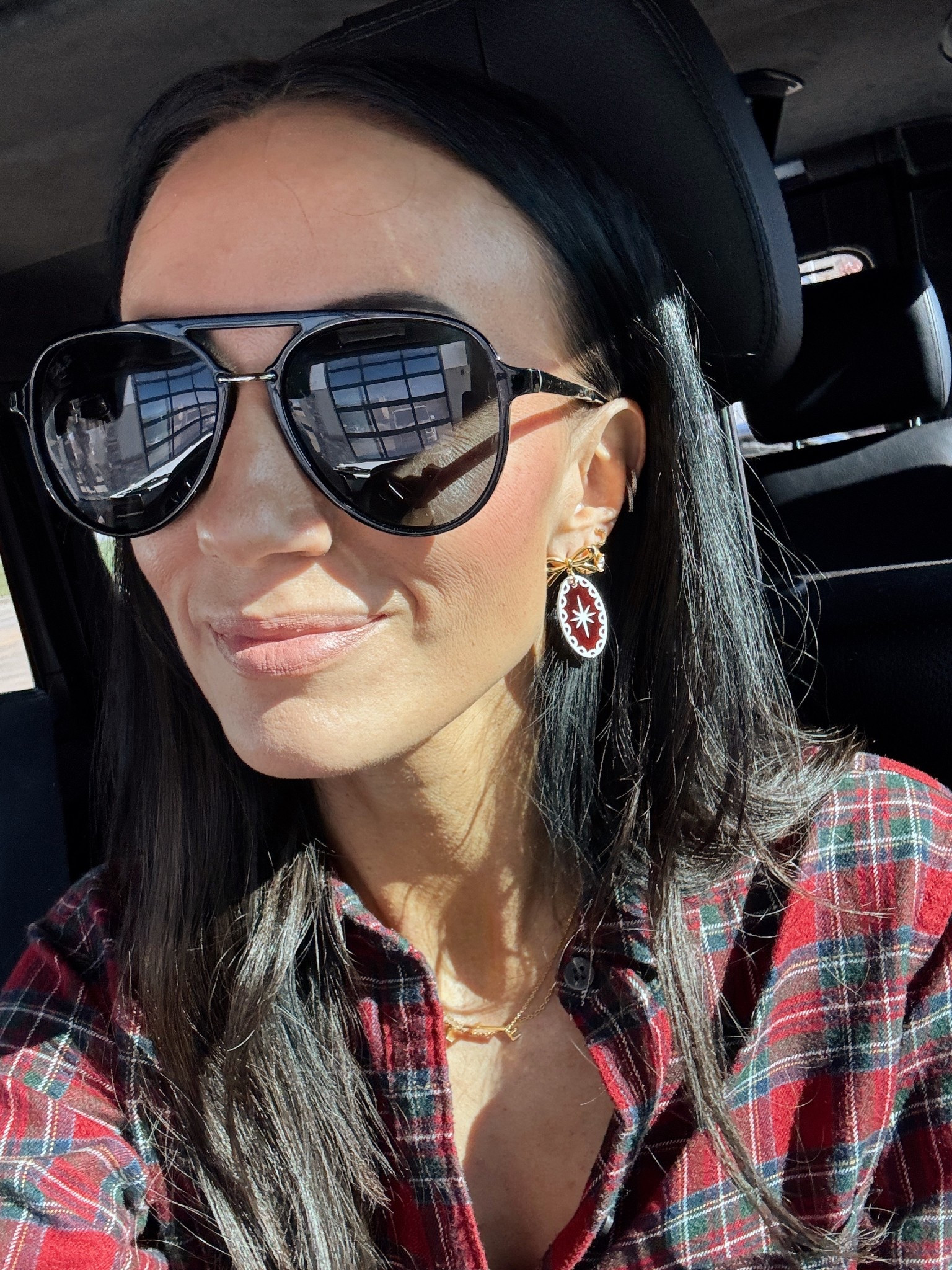 Brown gingham is a neutral for me this season. Love it with this hoop style.